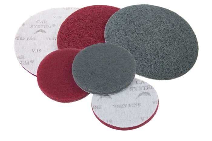 Die Kunstharzbeschichtung durchdringt das Vlies und verteilt somit das Schleifkorn gleichmäßig im gesamten Vlies